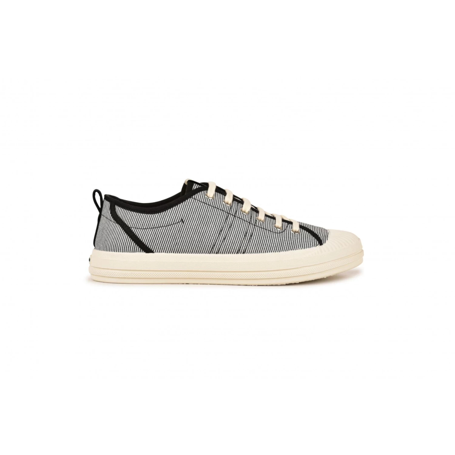 Grâce à une tige en tissu rayée noir et blanc, cette basket est tendance en plus d’être confortable.