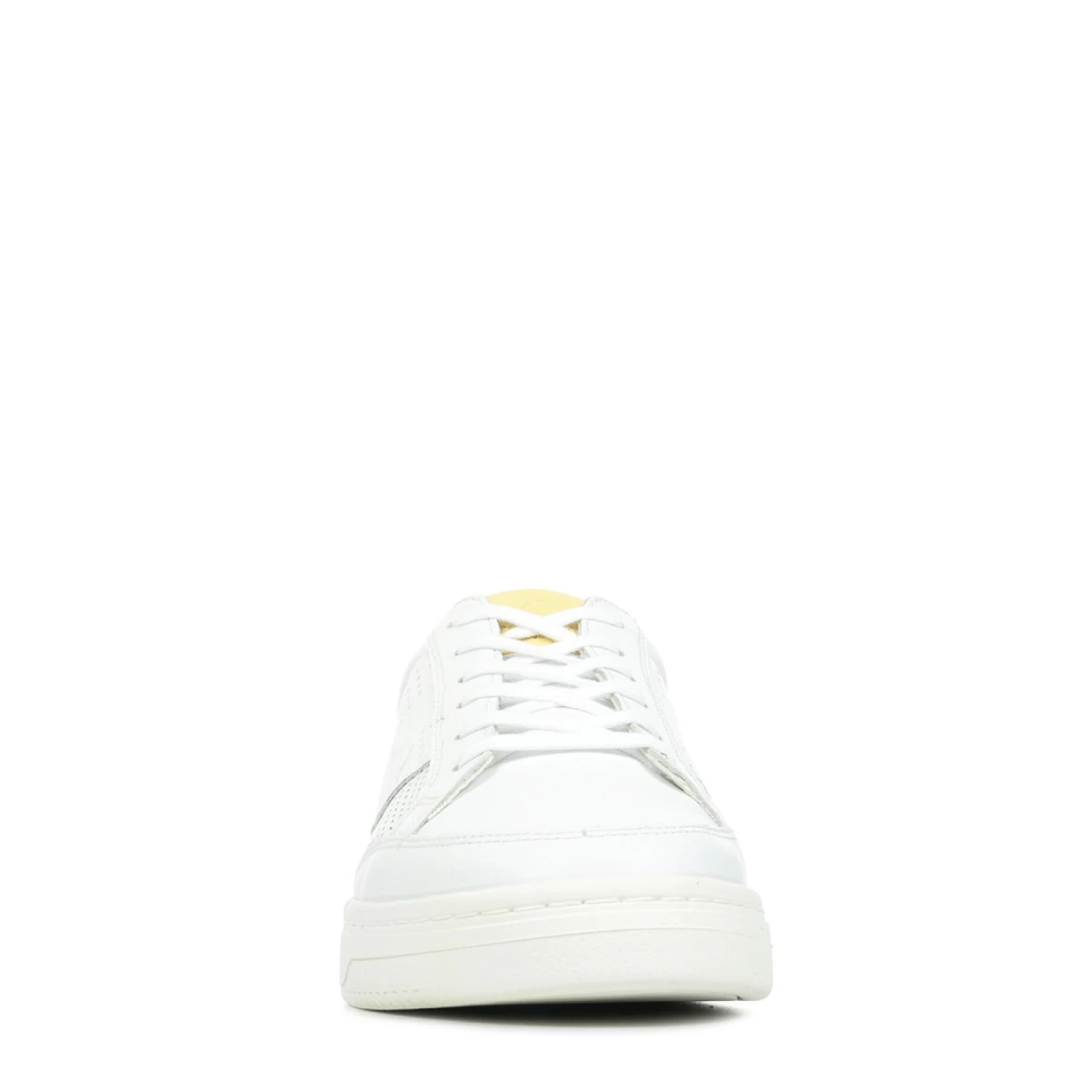 Adoptez sans plus attendre la sneaker femme BASALTE. Cette chaussure en cuir allie tendance et confort. Munie d’une tige en cuir blanc lumineux, cette basket est montée sur une semelle épaisse en caoutchouc naturel. C’est une sneaker très confortable grâce à sa semelle intérieure rembourrée sur le talon. On aime également le détail de la languette bicolore ainsi que du talon en cuir bordeaux.