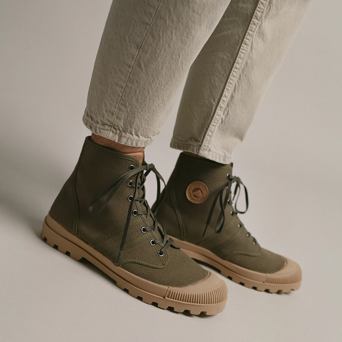 Le brodequin traditionnel Pataugas est de retour avec la version revisitĂ©e de la boots pour homme Authentique. Conçue avec une toile kaki en coton recyclĂ©, cette chaussure montante en toile est montĂ©e sur une semelle ultra-souple en caoutchouc naturel. C’est une boots en toile idĂ©ale pour vos envies de marche. Son logo est placĂ© Ă l’intĂ©rieur pour protĂ©ger la mallĂ©ole. Sa semelle en caoutchouc naturel lui garantit une grande souplesse afin de vous accompagner dans tous vos mouvements quotidiens.